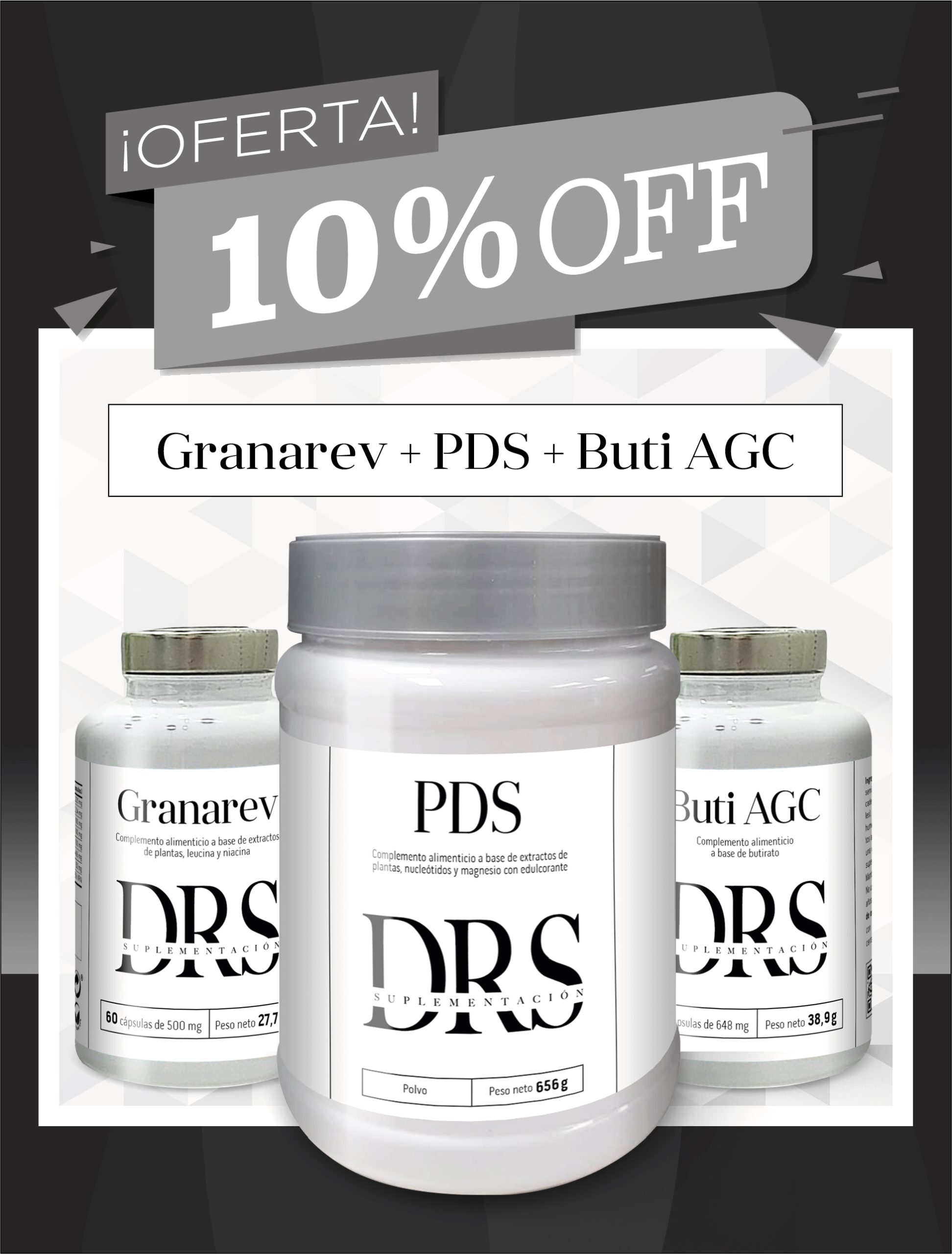 En nuestro proceso de fusión y cambio de nombre, estética, logo y diseño de etiquetas les informamos que podrán llegar en los pedidos realizados desde aquí y hasta el mes de enero, etiquetas del diseño antiguo de Dr Solution o etiquetas del diseño nuevo DRS SUPLEMENTACION, sin que esto afecte cambios en su formulación eficiencia y/o seguridad del producto siempre que se encuentre en su plazo de consumo adecuado, siendo esto debido a que el mismo pedido puede ser servido de varios almacenes distintos en diferentes etapas de actualización y reeriquetado progresivo.